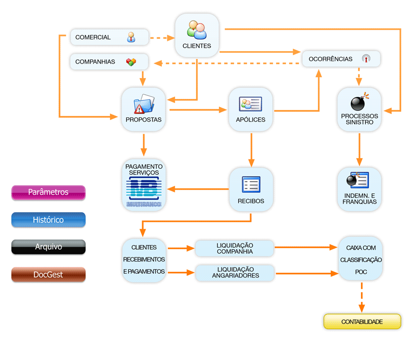 Apólices – na qual se encontram todos os registos sobre apólices, propostas e sinistros;